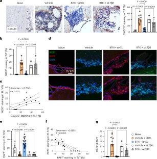 I.N., V.R., M.Z., K.C.-J., A.W., A. Pangan, A. Pu and L.W. contributed to the induction and monitoring of the EAE experiments. I.N., V.R., A. Pangan, J.P. and F.N.S. performed the immunostaining and analyses of the mouse brain tissues. J.S.Y.A. performed the dissection and the qPCR analysis of the leptomeninges in the animal studies. B.C. and B.N.-H. advised on the experiments and performed the BTKi occupancy assays. A.-K.P. and E.P. performed the quantification and analyses of serum NfL in the animal studies. S.S. and J.G.S. performed the mouse MRI measurements. V.R. and J.Z. performed the quantification and analysis of the CSF NfL, GFAP, BAFF and CXCL13 in the post mortem MS cohort. S.A.R. and D.S.R. performed the quantification and analysis of the CSF NfL, GFAP, BAFF and CXCL13 in the living MS cohort. J.L.B. advised of LT biology. J.L.G. and V.R. designed the study and wrote the paper.