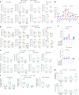Extended Data Fig. 5 Quantification of DC subsets from lymph nodes and spleens of mice with impaired T cell development.