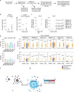 Extended Data Fig. 4 B cell receptor sequencing from HA-specific B cells.