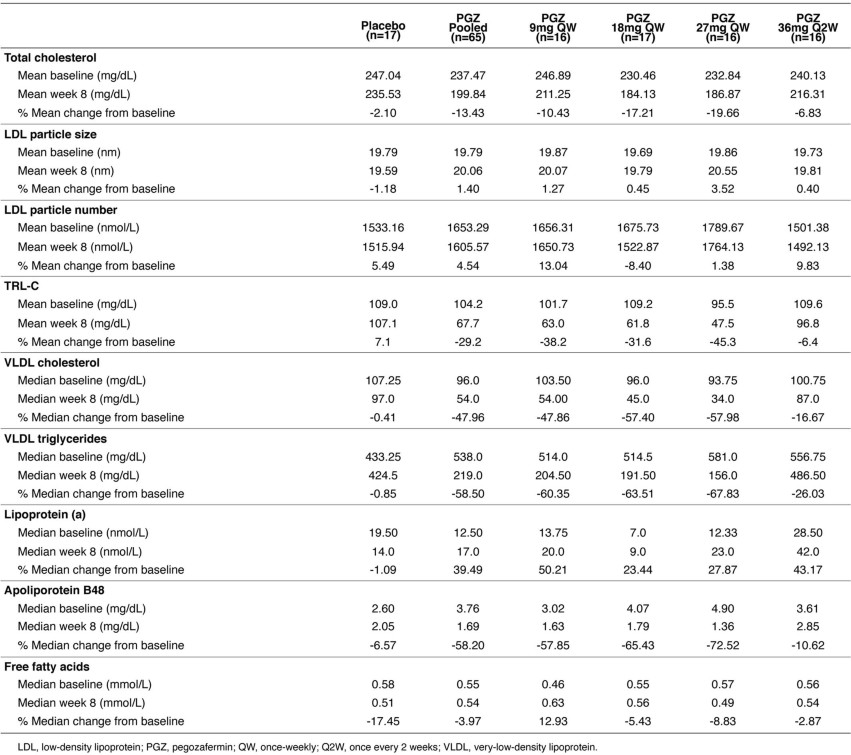 Extended Data Table 2 Effect of pegozafermin on serum lipids