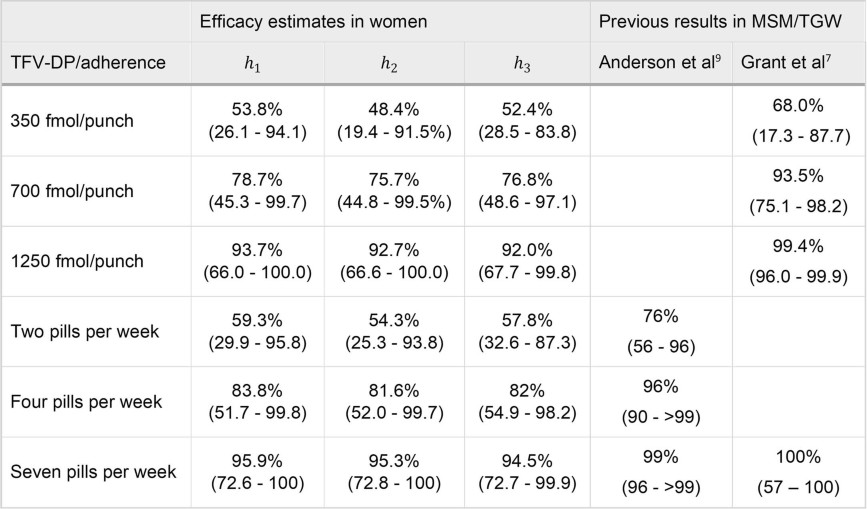 From: Efficacy estimates of oral pre-exposure prophylaxis for HIV prevention in cisgender women with partial adherence