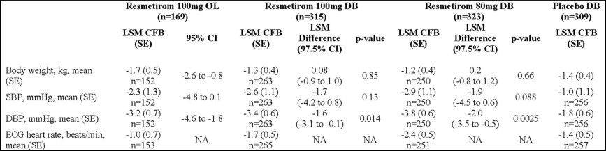 1. CFB, change from baseline; CI, confidence interval; DB, double-blind; DBP, diastolic blood pressure; ECG, electrocardiogram; LSM, least squares mean; NA, not available; OL, open-label; SEM, standard error of the mean; SBP, systolic blood pressure; SE, standard error.