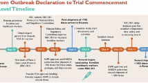 The current genomic data do not provide sufficient temporal signal to estimate the rate of evolution in the outbreak clade. However, we were not interested in estimating the time to the most recent common ancestor of the outbreak clade, because determining the emergence timing of the outbreak clade will more likely depend on the epidemiological and contact history of the index case. We wanted to estimate time to the most recent common ancestor of the outbreak clade and its closest human and zoonotic outgroups to better understand its potential zoonotic emergence pathway. We therefore reconstructed the time-resolved phylogeny under a fixed local clock using the BEAST software package. We assumed a fixed value of 1 × 10−3 substitutions per site per year as a plausible rate of evolution for an RNA virus in the early stage of an outbreak for the defined outbreak clade. We allowed the remainder of the tree to evolve under a lognormal prior centered on 5 × 10−4 (ref. 11). We used a two-phase coalescent model: the tree from the most recent common ancestor (Rwandan lineage) onward was modeled with an exponential growth model, with the earlier phase modeled as a constant-population size coalescent model. We ran two independent chains of 100 million states to ensure convergence, discarding the initial 10% of each chain as burn-in. The chains were then combined with LogCombiner. For all subsequent analyses, we assessed convergence using Tracer, and constructed a maximum clade credibility tree in TreeAnnotator v.1.10 (ref. 26). A plot of the temporal regression is given in Extended Data Fig. 3.