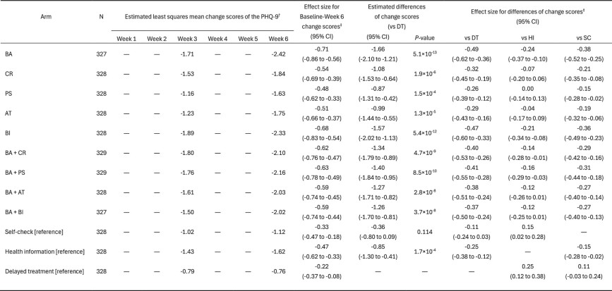 2. † Minus value indicates depression reduction. () indicates 95% confidence intervals.