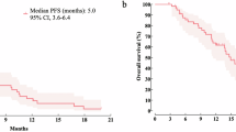 The confirmed ORR by the local investigator was 53.5% (90% confidence interval (CI) [44.8–62.1%]), with 2 patients having obtained complete response (CR) and 51 partial response (PR). Overall, 37 patients had stable disease (SD), with a clinical benefit rate (CBR) (CR, PR or SD ≥ 6 months) of 62.6% (95% CI [52.3–72.1%]) (Fig. 2a).