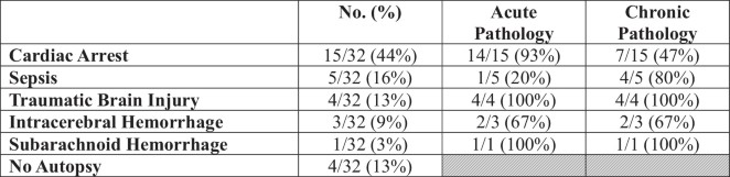 Extended Data Table 3 Etiology and classification of acute and chronic neuropathological changes within the brain