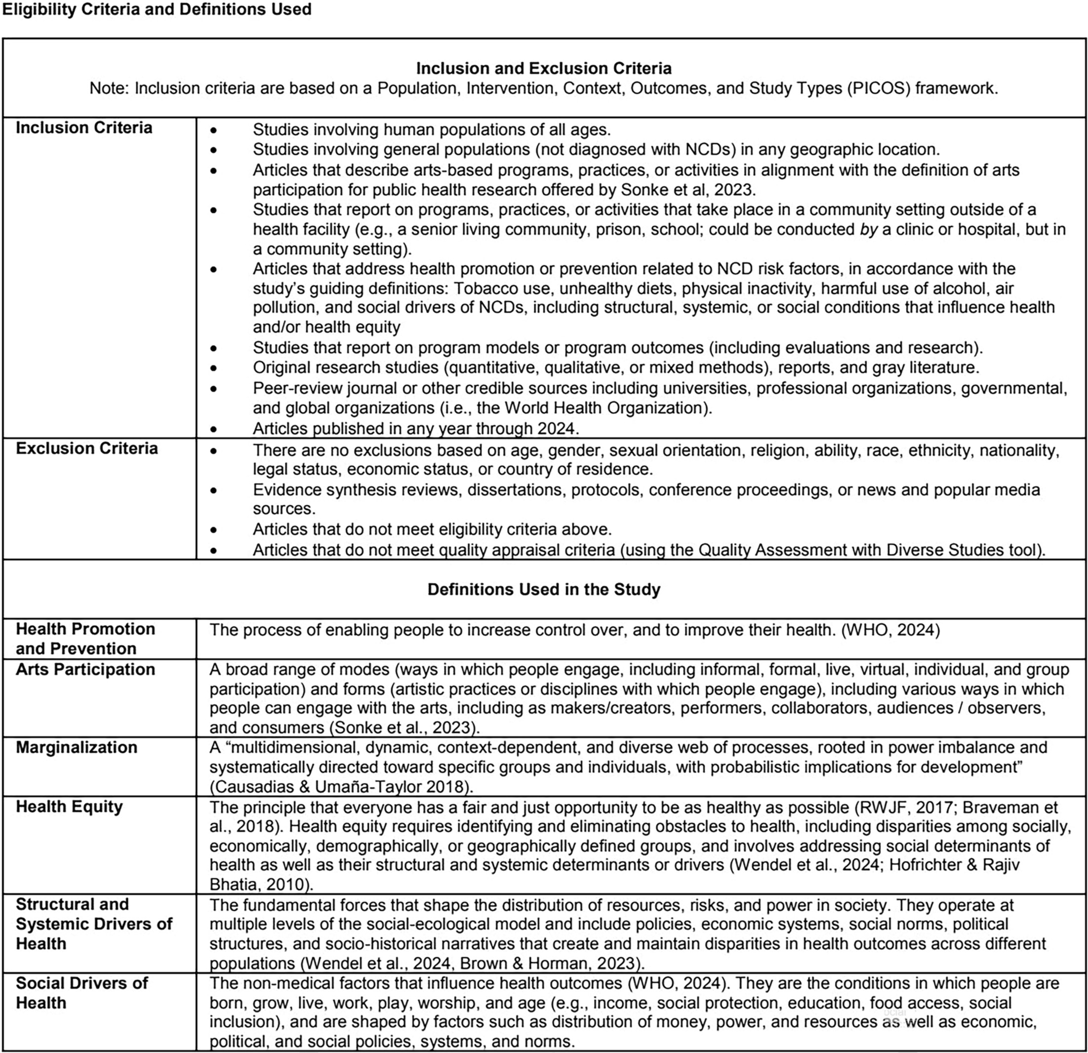 1. Table of eligibility criteria and definitions used in the study.