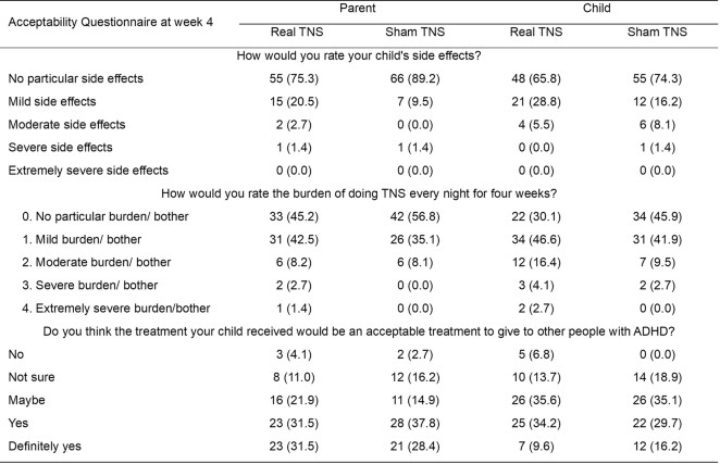 Extended Data Table 7 Acceptability questionnaire completed by parents and children at week 4