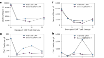 For in vitro pharmacokinetics, thawed Descartes-08 cells were incubated at 37 °C in complete medium and sampled at indicated timepoints for assessment of CAR protein expression and Descartes-08 RNA content. CAR protein expression was evaluated as described above. Descartes-08 mRNA was evaluated by qRT–PCR. Total RNA was extracted from Descartes-08 using an miRNeasy kit (Qiagen) according to the manufacturer’s protocol. The RNA concentration and purity were assessed using a NanoDrop spectrophotometer. Reverse transcription was performed using SuperScript IV with oligo(dT) primers (Thermo Fisher Scientific) to synthesize cDNA. Quantitative PCR was performed using SYBR Green Master Mix (Thermo Fisher Scientific) on a real-time PCR system (Applied Biosystems, ABI PRISM 7000). Gene-specific primers were used to amplify the target gene, and expression levels were normalized to housekeeping gene GAPDH. Sample sizes were chosen to achieve statistical power based on historical study data60.