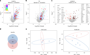 Statistical source data for the PD dataset includes eight tabs: ‘healthy_label_vs_unlabel’, ‘pd_label_vs_unlabel’ and ‘label_pd_vs_healthy’ are the source data for Fig. 4a–c. ‘pd_lysate’ provides the source data for lysate profiling. ‘healthy_binder’ and ‘pd_binder’ contain the source data for TME binders in healthy and PD group. ‘healthy_binder_enrichment’ and ‘pd_binder_enrichment’ present the enrichment analysis results for ‘healthy_binder’ and ‘pd_binder’.