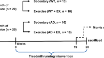 Francis, N. et al. Voluntary wheel running reduces amyloid-beta42 and rescues behavior in aged Tg2576 mouse model of Alzheimer’s disease. J. Alzheimers Dis. 73, 359–374 (2020).