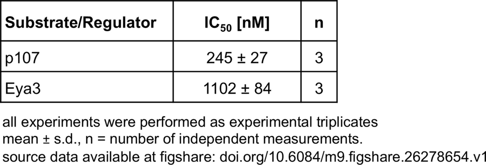 Extended Data Table 1 Inhibition (IC50) of PP2A:B55 by p107 and Eya3