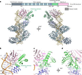 We thank the staff of cryo-EM facility and of the HPC Center of Westlake University for their support. We thank W. Wei and Y. Yu for providing templates for assembling TALE protein. This work was funded by the National Key Research and Development Program of China (2024YFC3405500 to L.M. and 2021YFA1100200 to Y.W.), the National Natural Science Foundation of China (32525039, 32430063 and 22137005 to P.L.; 32025007 and 32130017 to Y.W.; 82271897 to M.J.), the State Key Laboratory of Gene Expression (grant no. 2025ZY01117), the Zhejiang Provincial Natural Science Foundation of China (LR23C050001 to P.L. and LZYQ25C070001 to M.J.), the ‘Pioneer’ and ‘Leading Goose’ R&D Program of Zhejiang (grant no. 2024SSYS0036), the China Postdoctoral Science Foundation (2024M762947 to L.M.) and the Westlake Center for Genome Editing of Westlake University, program no. 21200000A992410/003. The funders had no role in study design, data collection and analysis, decision to publish or preparation of the manuscript.