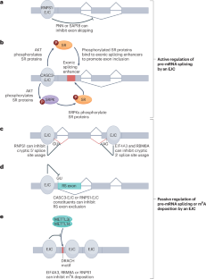 Schlautmann, L. P. et al. Exon junction complex-associated multi-adapter RNPS1 nucleates splicing regulatory complexes to maintain transcriptome surveillance. Nucleic Acids Res. 50, 5899–5918 (2022). This study provides one example of how EJC constituents regulate alternative splicing and prevent cryptic splice site usage.