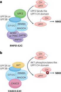 Cho, H. et al. AKT constitutes a signal-promoted alternative exon-junction complex that regulates nonsense-mediated mRNA decay. Mol. Cell 82, 2779–2796 (2022). This study identifies AKT as an EJC constituent that activates UPF1 in NMD and demonstrates that insulin increases the abundance of AKT-containing EJCs.