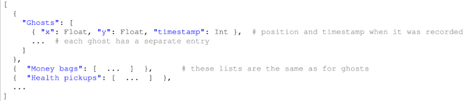 The generated game logs were supposed to be complete, i.e., they should allow to recreate everything that happened in the game. In order to verify this, firstly level maps were recreated from static logs. Then the specific events were extracted from the dynamic logs containing the course of each player’s gameplay and placed on such prepared maps. The maps thus generated (see Fig. 7) are correct, which was cross-checked by comparing them with the games. Also, the events appear to be correctly logged, as indicated, e.g., by the large number of health events in the middle room on the first level. This is due to players just becoming familiar with the game interface, leading to frequent protagonist deaths in this location, which is the first room in the game. The dense occurrence of events is thus consistent with observations made by the researchers during the experiment.