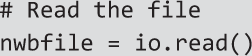 Alternatively, users could download the file(s) directly from DANDI, and specify the path to the downloaded NWB file, instead of the s3_path given above. In that case, there is no need to specify the “driver”. In any case, the next line reads the file into a variable called nwbfile, which we use for the rest of the demonstration.