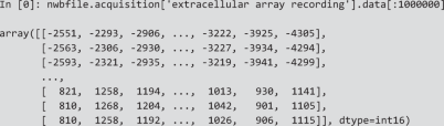 nwbfile.acquisition[‘extracellular array recording’].data[:]