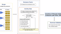 where ISEC is industrial sectoral energy consumption, Etotal is total industrial energy consumption and ISEC′ is industrial sectoral energy consumption of a similar city, \({E}_{total}^{{\prime} }\) is total industrial energy consumption of a similar city. In the workflow (Fig. 3), these cities with missing data are classified as case 1-1, case 2-1 and case 3-1, respectively, in order to distinguish them from cities with complete industrial sectoral energy consumption (see below). Therefore, we have classified 48 cities into 6 groups. Each case is then processed differently to acquire the annual bottom-up inventories. For the 48 cities, there are 4 case 1 cities, 10 case 2 cities, 20 case 3 cities, 1 case 1-1 city, 6 case 2-1 cities, and 7 case 3-1 cities. Specifically: