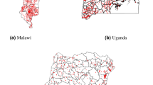 The spatial heterogeneity of resources and environmental factors have a significant impact on the distribution of livestock. Hence, based on the existing literature, we identified and obtained 13 SES factors that may potentially influence LSKD distribution21,24,35,36,37. The variables with global extents were selected to facilitate the replication of the current study in other geographic regions (Table 1). Net primary productivity (NPP) and leaf area index (LAI) were derived from moderate-resolution imaging spectroradiometer (MODIS) sensors38,39. Annual precipitation, air temperature and vapor pressure deficit data were computed from climatologies at high resolution for the earth’s land surface areas (CHELSA) dataset40. Soil moisture, snow depth and net downward shortwave radiation were obtained from the famine early warning systems network (FEWS NET) land data assimilation system (FLDAS) dataset41. Elevation data was obtained from the shuttle radar topographic mission (SRTM)42. The location and temporal distribution of surface water were obtained from the joint research center (JRC) yearly water classification history, v1.4 dataset43. Pixels with permanent water bodies were extracted from this dataset, and Euclidean distances were calculated to derive the distance to water body maps for each year. Settlement locations were downloaded from the Geofabrik website, and Euclidean distance was calculated to derive the distance to the settlement map. The settlement shapefile was extensively corrected using imagery from OSM, Bing, Google, and Yandex, national census data, administrative boundaries maps, and Wikipedia articles containing coordinates to ascertain the locations of settlements. Annual population density estimates were downloaded from the Worldpop website44. Nighttime light data was obtained from the defense meteorological satellite program (DMSP) nighttime lights extension dataset45,46. Most of these datasets were downloaded through Google Earth Engine for 2000–2019 but rescaled to annual and 1 km spatial resolution.