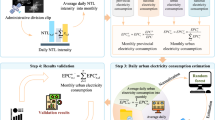 The “top-down” approach offers an effective alternative14,15. This approach utilizes open-source big data, such as satellite imagery and socio-economic data (e.g., gross domestic product (GDP), population density), serving as proxies for data downscaling16,17,18,19,20. For instance, Zhou et al.21 developed a spatial disaggregation index using multi-source variables to estimate high-resolution building energy consumption. Furthermore, machine learning techniques effectively extract non-linear relationships between variables, enabling the “top-down” method to estimate electricity consumption accurately with minimal loss, thus improving the model’s precision. Chen et al.22 used the particle swarm optimization-back propagation (PSO-BP) algorithm to estimate electricity consumption at the 1 km × 1 km grid using nighttime lights as a proxy. This study demonstrated the synergy between big data and machine learning in downscaling electricity consumption. However, most existing datasets provide only annual data, limiting applications that require monthly data (e.g., energy demand forecasting23 or short-term effect analysis24). According to our survey, monthly electricity consumption data with high spatial resolution are not currently available in China.