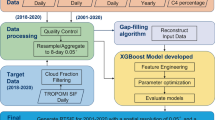 For model training and evaluation, we utilized Caltech TROPOMI SIF data from March to October (the growing season) spanning 2018 to 202211. We focused on daily average clear-sky SIF data with cloud fractions below 0.2 and excluded data with a SZA exceeding 70°. The ungridded data were then aggregated into 0.2° grids at an 8-day interval, aligning closely with the TROPOMI SIF footprint size. We specifically employed SIF values at 740 nm from the 743–758 nm retrieval window, which offers optimal retrieval precision and minimal cloud sensitivity54.