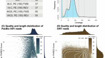 HiFi reads were assembled with Hi-C paired-end reads to generate two haplotype contig-level assemblies by Hifiasm v 0.18.99 with parameters of “-D 50 -N 500–hom-cov 32 -s 0.45–n-weight 5–n-perturb 18000–f-perturb 0.3” using the Hi-C integrated assembly mode. The clean Hi-C reads were separately aligned to two sets of contigs by Juicer v 1.610 and utilized to anchor these two contig sets onto pseudo-chromosomes by 3D-DNA11, respectively. Placement and orientation errors exhibiting obvious discrete chromatin interaction patterns were manually adjusted in Juicebox v 2.1512 to generate the final chromosome-level assembly for each haplotype. The statistics of the final assembled genomes were calculated by TBtools-II v 2.09713, which consisted of two haplotypes - haplotype A (565.68 Mb) and haplotype B (521.13 Mb), with scaffold N50 length of 22.80 Mb and 21.91 Mb, respectively (Fig. 1 and Table 1 & S1). About 95.88% and 95.28% of assembled sequences were anchored onto 24 pseudo-chromosomes of haplotype A and B, respectively (Table 1).