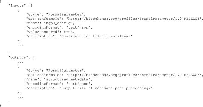 Here, we propose the Archivist as a framework for performing parsing and structuring operations. Our goal is to facilitate the implementation of our metadata handling practices by providing the Archivist as an intermediary tool to extract information from a heterogeneous metadata file collection and unify it into a single file. Some users will want to structure the unified metadata file according to a vocabulary or schema such as RO-Crate18, CodeMeta, or Bioschemas19. Whereas our proposed metadata practices aim to collect information describing the conditions under which an individual result was obtained, vocabularies and schemas provide a higher level of description for entities, context, and goals surrounding the experiment itself. Nonetheless, some of the collected metadata can help to generate documents according to these defined standards. To do this, users can define data templates to structure the extracted information from the collection of metadata files into a comprehensive output compliant with their desired standard. Still, users will likely need to provide additional input to fully exploit the expressivity of the vocabularies. An example output compliant with the Bioschemas vocabulary for computational workflows is shown in “Methods”.