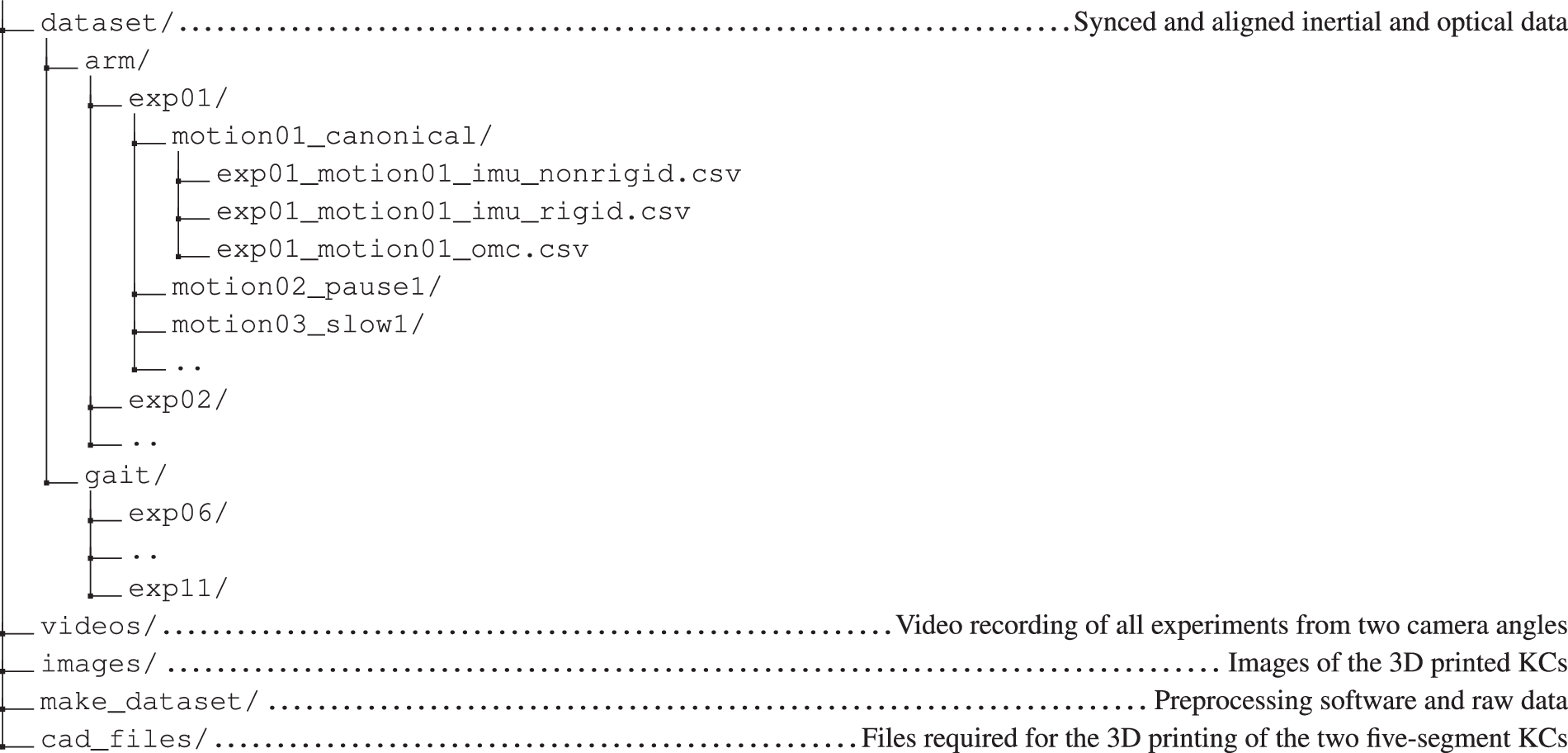 1. The data records include 1) the (processed) dataset, 2) associated videos of the experiments and images of the KCs, 3) the corresponding raw data and data processing software and tools employed, and 4) the CAD files for 3D-printing the KCs.