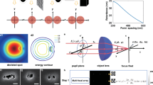 To obtain the Dual-Beam and conserve a higher proportion of the laser power, one may think of using a slit that cuts a ring-shaped beam (also called donut, doughnut, vortex or hollow beam) generated by a spatial light modulator (SLM)55, axicon, fork phase mask or spiral phase plate56,57,58. However, these methods affect the phase uniformity of the beam, which generates interference patterns at the focus, and do not generate the appropriate ring-shape required (with a low θ value, see Fig. 1a) due to infilling of the ring. Moreover, the loss of power that occurs generating any of these beams is still significant.