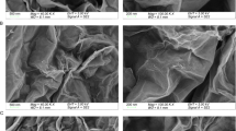 In the Raman spectra (Fig. 1b), GO and rGO exhibited two prominent peaks at 1350 and 1580 cm−1, which corresponded to the D and G bands. The D band associates with structural defects and disorders of the sp2 carbon domains, whereas, the G band is related to the stretching vibration of sp2 carbon atoms24. The intensity ratio of the D band to the G band (ID/IG) of GO (0.85) was lower than that of rGO (0.95), suggesting that the newly formed sp2 domains after reduction were smaller but more prevalent25. rGO reduced aromatic character, whereas GO can be described as a nonaromatic surface with sp3 carbon atoms (bonded with oxygen groups) with isolated aromatic areas and sp2 domains26. These characteristics differentiate the adsorption behavior of rGO and GO.
