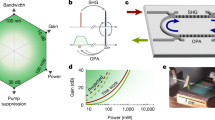 Kuyken, B. et al. On-chip parametric amplification with 26.5 dB gain at telecommunication wavelengths using CMOS-compatible hydrogenated amorphous silicon waveguides. Opt. Lett. 36, 552–554 (2011).