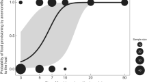 After individual fish were introduced to the respirometers on Day 1, \(\dot{M}{O}_{2}\) was measured repeatedly overnight and part way into the next day until >120 \(\dot{M}{O}_{2}\)measures were obtained. At that point, the standard metabolic rate (SMR. i.e. the best estimate of basal metabolism under experimental conditions) of fish under fully oxygenated conditions was estimated by plotting the frequency distribution of \(\dot{M}{O}_{2}\) data and extracting the 15th percentile value according to the methodology of18,19,20,21. Once SMR was resolved, the % air saturation level of seawater within the reservoir tank was reduced in progressive steps by bubbling nitrogen gas through seawater instead of air. Two water pumps (Eheim 300, Eheim GmbH, Deizisau, Germany) were used to mix the reservoir tank. The target O2 levels in the reservoir tank were adjusted to ensure that the measured O2 level in the middle of the closed respirometry cycles progressed in steps across the following 6 levels: 60, 40, 30, 25, 20, 15, 10 and 5% air saturation. \(\dot{M}{O}_{2}\) was measured 3 times at 60, 40, 30 and 25% air saturation, twice at 20% air saturation and once at 15, 10 and 5% air saturation. The critical O2 saturation (S crit) limit of A. frenatus was subsequently measured using the methodology of Behrens and Steffensen22 and Cumming and Herbert23. In brief, mean \(\dot{M}{O}_{2}\) at each O2 level was calculated and a repeated measures one-way ANOVA used to test the null hypothesis that O2-specific values of \(\dot{M}{O}_{2}\) were not significantly below the measure of SMR under fully oxygenated conditions. A Holm-Sidak post-hoc test identified \(\dot{M}{O}_{2}\) values that failed this hypothesis, which signified that fish could no longer regulate SMR at those O2 levels. A linear regression was subsequently plotted through that \(\dot{M}{O}_{2}\) data with a forced y intercept of zero. SMR was extrapolated across the entire range of O2 and the associated point of intercept between the two linear equations identified S crit in units of % air saturation. O2 levels >80% air saturation were considered as being fully air-saturated (i.e. normoxic).