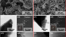 Tribotests were conducted using a ball-on-flat configuration lubricated by a base oil without and with 1 wt.% of an IL, trihexyltetradecylphosphonium bis(2-ethylhexyl) phosphate ([P66614][DEHP]). This base oil is a mixture of Group III and IV base oils without containing any additive and is used for formulating an SAE 0W-30 engine oil (Chevron Corp., USA). The viscosity of this base oil is 26.6 cP at 23 °C, 13.8 cP at 40 °C, and 3.12 cP at 100 °C. The IL was synthesized following the procedure reported previously9. Tests were carried out on a reciprocating sliding tribometer (Plint TE77, Phoenix Tribology, UK) at a normal load of 100 N, an oscillation frequency of 10 Hz, a stroke of 10 mm, and a lubricant temperature of 100 °C. A 10-mm diameter grade 25 AISI 52100 bearing steel ball (R a: 0.025–0.05 μm) was used to slide against a flat of hardened M2 tool steel (R a: 0.06 μm). The initial Hertzian contact pressure is 2.19 GPa maximum and 1.46 GPa in average at the contact area. The minimum oil film thickness, calculated using the Hamrock and Dowson formula33, at the initial contact is 0.02 μm at the stroke center and near zero at the stroke ends. The λ-ratio (ratio of oil film thickness and composite roughness)33 is less than 0.3, indicating that the lubrication regime is boundary. The friction and wear results had been discussed in an early report, and this study focuses on the wear debris characterization. The wear volume was measured by using a 3D optical interferometer (Wyko NT9100). The wear volume on the steel flat was negligible and the depth of the ball wear scars was 1–2 orders of magnitude higher than the tribofilm thickness and thus the ball wear volume basically reflects the material loss. The tested wear debris particles were rinsed with isopropyl alcohol and then centrifuged to collect the precipitates. The washing and centrifugation process was repeated twice. The collected wear debris particles were deposited on a copper grid with a carbon layer.