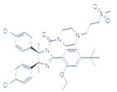 | 726.28 C38H48Cl2N4O4S 939981-39-2 | RG7112 (RO5045337) is an orally bioavailable and selective p53-MDM2 inhibitor. Phase 1. |