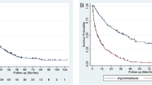 The concept of oligometastases was first proposed in Hellman’s paper12, we further specified the ES-SCLC oligometastases as follows: (1) only one organ metastasis or metastatic lymph node metastases (able to be covered by a safe radiotherapy portal); (2) multiple brain metastases (treated with whole brain radiotherapy); or (3) continuous vertebral bone metastases treated in a single radiotherapy field. The ES-SCLC polymetastases were defined as the metastases excluding oligometastases.