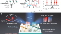 The theoretical peak directivity of the fabricated POPA is plotted in the inset of Fig. 6e. It can be seen that a directivity of 38.7 dBi with a full width half maximum (FWHM) of 0.68° in the x-direction (Fig. 6d) is obtained near the telecommunication wavelength (1540 nm). With a wavelength-dependent projection angle and an ultra-small beam divergence angle, the proposed POPA has the potential to act as an integrated optical spectrometer50, a frequency-division multiplexer51 and is promising for the construction of wireless data nanolinks for plasmonic ICs22.