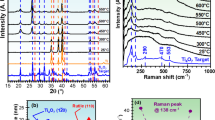 The transmissivity of the as-deposited and annealed aTYO films with 14% Y and the annealed Ta2O5 films was measured with a spectrometer (UV-3100PC, Shimadzu, Japan) to analyse the values of n and κ for each sample. The thicknesses of the as-deposited aTYO film, annealed aTYO film, and annealed Ta2O5 film were 320 nm, 320 nm, and 1060 nm, respectively. The annealing conditions were 30 min at 15 Pa residual air40. The spectra were fitted with SCOUT software ver. 3 (Techno Synergy, Japan), which calculated the optical interference based on the Fresnel equations.