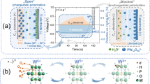 We manufactured a customized RED stack by mostly following the methods of M. C. Hatzell and B. E. Logan26. Briefly, silicon gaskets (~1.3 mm in thickness) were cut into a rectangular shape (2 × 1 cm2) to provide flow path between IEMs that had a cross section area of 2 cm2. The silicon gaskets and IEMs as prepared were stacked up in a repetitive alternation (i.e. CEM, gasket, AEM and gasket, respectively) and then, two solution chambers for external connection to ionic circuit were attached to the lateral ends of the stack comprising gaskets and IEMs. Two salt solutions (0.01 and 4.0 M NaCl) were introduced into the RED system with a flow rate of 0.71 mL/min. Typically, the RED stack generated 2.2 V under those conditions.