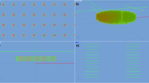 We employ the COMSOL software to simulate output light field intensity distribution and calculate the optical radiation pressure force. We use the Maxwell stress tensor37, which is provided by the electromagnetic wave, frequency domain interface in the COMSOL software, to derive the optical forces exerting on the PSs38. The stress tensor approach is exact and does not rely on any assumption regarding the nature of the field (whether evanescent or propagating) or of the objects. Assuming a steady-state condition, the net radiation force F on the particle can be determined by integrating the dot product of the outwardly directed normal unit vector \(\hat{{\bf{n}}}\) and Maxwell’s stress tensor \(\overleftrightarrow{{\bf{T}}}\) over a surface enclosing the particle, as \({\bf{F}}=\mathop{\oint }\limits_{s}\hat{{\bf{n}}}\cdot \overleftrightarrow{{\bf{T}}}dS\), where 〈 〉 represents a time average. For steady-state optical conditions, the Maxwell’s stress tensor can be expressed as, \({T}_{ij}=\frac{1}{2}{\rm{Re}}[\varepsilon {{\bf{E}}}_{{\boldsymbol{i}}}{{\bf{E}}}_{{\boldsymbol{j}}}+\frac{1}{\mu }{{\bf{B}}}_{{\boldsymbol{i}}}{{\bf{B}}}_{{\boldsymbol{j}}}-\frac{1}{2}(\varepsilon {|{\bf{E}}|}^{2}+\frac{{|{\bf{B}}|}^{2}}{\mu })\overleftrightarrow{{\bf{I}}}]\). Therefore, we may calculate the optical radiation pressure exerting on the PSs. Here, we employ the normal calculated method to estimate the magnitude of order of the optical radiation pressure. In the COMSOL software, the light radiation pressure exerting on the particles can be calculated by:\({F}_{{\rm{x}}}=\mathop{\oint }\limits_{{\rm{s}}}({\rm{ewfd}}.{\rm{dnTx}}){\rm{ds}}\), \({{\rm{F}}}_{{\rm{y}}}=\mathop{\oint }\limits_{{\rm{s}}}({\rm{ewfd}}.{\rm{dnTy}}){\rm{ds}}\), and \({{\rm{F}}}_{{\rm{z}}}=\mathop{\oint }\limits_{{\rm{s}}}({\rm{ewfd}}.{\rm{dnTz}}){\rm{ds}}\), where \({\rm{ewfd}}\mathrm{.dnTx},\,{\rm{ewfd}}\mathrm{.dnTy},\,\mathrm{and}\,\mathrm{ewfd}{\rm{.dnTz}}\) are the downward x, y, z component of Maxwell’s stress tensor. We have verified that the calculated result is consistent with the analytical solution of MIE.