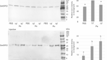 All of the RNA samples used for cDNA synthesis were collected as previous described34. The different developmental stages (embryos, larvae, female and male pupae and adults), tissues (fat body, gut, ovary, venom gland and the remaining carcass of 2-day aged P. puparum female wasps) and immune challenged samples (PBS, Gram-positive bacterium M. luteus, Gram-negative bacterium E. coil and fungus B. bassiana) were obtained, washed, and then pooled into centrifuge tube with Trizol reagent (Invitrogen, USA), respectively. Any genomic DNA in these RNA samples was removed by adding RNase-free Dnase (Promega). The total RNA was obtained followed by the manufacturer’s instructions. PrimeScript™ One Step RT-PCR Kit (Takara, Japan) was used in cDNAs synthesis. Primers for target and control genes (Supplementary Table S6) were designed on website Primer 362. The qPCR was conducted in 25 μl reaction mixture followed the protocol of SYBR Green Supermix Kits (Takara, Japan) on BIO-RAD CFX96™ Real-Time System. The qPCR reactions were set up as follows: enzyme activation at 95 °C for 30 secs, followed by 40 cycles with denaturation at 95 °C for 5 sec, annealing at 60 °C for 34 sec. Dissociation curves were checked at the end of PCR reactions. The relative expression profiles of SPI genes in different immune challenge stages took P. puparum actin 1 as an internal control. Developmental- and tissues-specific expressions were normalized to a reference gene (18 s rRNA). We calculated the relative expression levels in accordance with the 2ΔΔCt method63. Error bars represent the means ± standard deviations from three biological replicates. The expression profiles of SPI genes in different development stages and tissues distributions were performed by one-way analysis of variance (ANOVA) and the expression profiles of SPI genes in immune responses were conducted by two-way ANOVA.