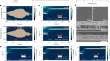 Indium tin oxide coated glass (ITO-Glass) and polyethylene naphthalate (ITO-PEN) were patterned by a femtosecond laser, followed by ultrasonic cleaning in detergent water, deionized water and ethanol for 15 min each. The substrates were then dried under an N2 flow and treated with plasma for 5 min to remove any organic residues. Fullerene C60 was thermally evaporated onto the ITO-coated substrates with a thickness of 10 nm under a deposition pressure of 8 × 10–6 mbar at a deposition rate of 0.1 Å s−1. The 160 nm PbI2 films were then thermally evaporated on the C60 underlayer with controlled deposition rates within the range between 0.5 Å s−1 and 40 Å s−1, as monitored by a quartz crystal microbalance sensor. After the PbI2 deposition process, the samples were transferred to a spin coater in an N2-filled glovebox for the subsequent chemical conversion steps. A 56 mg ml−1 methyl-ammonium iodide (MAI) solution in ethanol containing 24 μl of 2-methoxyethanol was spread on the whole PbI2 film and then spin-coated at a rate of 3000 rpm for 30 s. The yellow film turned brown during the spin-coating and was then annealed at 150 °C on a hotplate outside of the glovebox for 10 min. To prepare the HTM layer, a solution of spiro-OMeTAD dissolved in ethyl acetate35 (41.6 mg ml−1, 17 μl ml−1 4-tert-butylpyridine, 7.8 μl ml−1 stock solution of 500 mg ml−1 lithium bis trifluoromethylsulfonyl imide in acetonitrile) was dropped onto the perovskite layer while spinning at a rotation rate of 2000 rpm. For the modules, P1 patterning of the module was performed with a femtosecond laser (Wuhan Hongtuo). After the HTM layer was deposited, the C60/perovskite/spiro-OMeTAD layers were fully removed to ensure low contact resistance at the interconnected space through P2 patterning. Finally, 10 nm MoO3 and 60 nm Au were successively evaporated through a properly designed mask under high vacuum (4 × 10−6 mbar) to complete the devices for tests.