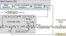 The first part of this study is a single-blind, randomized, two-way, cross-over study to examine the impact of overestimation of a meal insulin bolus in the context of dual-hormone closed-loop operation (insulin and glucagon) combined with a simplified semi-quantitative meal-size estimation in adults with type 1 diabetes. Two separate meals (75 g and 45 g of carbohydrate) were tested in clinical settings during two subsequent clinical trials registered as NCT02626936 (December 10, 2015) and NCT02798250 (June 14, 2016). The second part of this study involved in silico clinical trials to explore the effect of an underestimated, adequately estimated, and overestimated boluses with three different meal sizes (45 g, 75 g, and 105 g of carbohydrate). These trials mimicked the clinical experiments in duration and protocol. The in silico trials were conducted using the same dual-hormone dosing predictive algorithm that was used for the human clinical trials30. The algorithm is based on a fuzzy-supervised model-based predictive technique combined with extended Kalman filtering and a set of heuristic rules. The algorithm was initialized using body weight, daily insulin requirements and insulin-to-carbohydrate ratios. Glucagon delivery is based on heuristic logical rules employing estimates of plasma glucose concentrations and their trends as provided by the Kalman filter and is accompanied with suspension of insulin delivery and reduced aggressiveness of insulin dosing. The in silico trials were conducted using the Development Platform for Artificial Pancreas Algorithms system31.