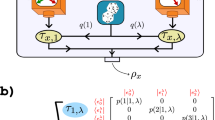 where the displacement operation \(\hat{D}(\beta )=\exp [(\beta {\hat{a}}^{\dagger }-{\beta }^{\ast }\hat{a})]\) allows us to flexibly modulate the amplitude and phase of the coherent state |γ〉 such that \(\hat{D}(\beta )\,|\gamma \rangle =|\gamma +\beta \rangle \). The displacement operation is physically implemented by combining the signal state with a local oscillator (LO) at a beam splitter with nearly unit transmittance. A measurement operator of the PNRD is given by a set of photon number bases \(\{{\hat{{\rm{\Pi }}}}_{n}=|n\rangle \langle n|\}\).