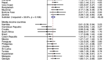 Associations between the number of unhealthy behaviours and visual impairment did not differ when using a different cut-off for diet quality (low/very low versus intermediate/high, Table 3). Participants reporting one, two or three unhealthy behaviours had a 1.17 (0.85–1.61), 1.89 (1.31–2.72) and 2.14 (1.12–4.09)-fold increase of the odds of visual impairment, respectively. Associations were statistically significant for reporting two or three unhealthy beaviours. Besides, we performed multiple imputations for missing data, in order to assess a potential selection bias. The associations between the number of unhealthy behaviours and visual impairment remained unchanged. Participants reporting one, two or three unhealthy behaviours had a 1.21 (0.87–1.69), 1.47 (1.03–2.10) and 2.37 (1.49–3.79)-fold increase of the odds of visual impairment, respectively.