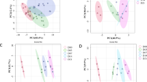 GC-TOF/MS analyses were performed using an Agilent 7890B GC system (Agilent, USA) coupled with a Pegasus HT TOF mass spectrometer (LECO, St. Joseph, MI, USA). The system was equipped with a DB-5MS capillary column coated with 5% diphenyl cross-linked with 95% dimethylpolysiloxane (30 m × 250 μm inner diameter, 0.25 μm film thickness; J&W Scientific, Folsom, CA, USA). A 1 μL aliquot of derivatized sample was injected in the splitless mode. Helium was used as carrier gas at a constant flow rate of 1 mL/min through the column. The front inlet purge flow was 3 mL/min. The column temperature was initially at 50 °C; after 1 min, the temperature was increased from 50 to 310 °C at a rate of 20 °C/min and held at 310 °C for 6 min. The injection, transfer line, and ion source temperatures were 280, 270, and 220 °C, respectively. The energy was −70 eV in electron impact mode. The MS data were acquired in full-scan mode with an m/z range of 50–500 at a rate of 20 spectra/s after a solvent delay of 366 s. Chroma TOF 4.3X software (LECO) and LECO-Fiehn Rtx 5 database were used for extracting raw peaks, filtering and calibrating data baselines, aligning peaks, performing deconvolution analysis, identifying peaks and integrating peak areas. The RT index (RI) method was used for peak identification, and the RI tolerance was 5,000. Metabolic features detected in less than 50% of all QC samples were discarded35. The UHPLC-Q-TOF/MS and GC-TOF/MS data were normalised and evaluated the distribution by MetaboAnalystR.