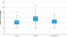 NAFLD was defined as fatty liver detected by ultrasonography (ProSound Alpha 7, Hitati Aloka Medical, Tokyo, Japan) in the absence of other causes of chronic liver disease (i.e., hepatitis C antibody-negative, hepatitis B surface antigen-negative, alcohol consumption <20 g/day)26. An ultrasonographical diagnosis of fatty liver was defined as a bright liver, increased liver echotexture compared with kidneys, vascular blurring, and deep attenuation of the liver. This diagnosis was performed by two specialists in internal medicine.