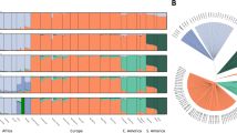 The influence of among population genetic structure of the sampled C. capitata populations on trait means and acclimation response differences was also determined. Microsatellite data matching sampling locations in this study were obtained from two earlier studies26,56 to use in phylogenetic tree construction. Individuals included were rescored in GENEMAPPER v3.7 (Applied Biosystems). Using POPTREEW84 an unrooted neighbour-joining tree was constructed based on Nei’s genetic distance (DA85) and statistical support for the branches were assessed using non-parametric bootstrapping (10,000 replicates) (Fig. 1A). The resulting phylogeny was imported into R as a tree file. The resulting phylogenetic tree was unresolved with relatively low bootstrap values, but this is not surprising as there is no population genetic structure between C. capitata populations within South Africa56, or even between populations in Africa26. Using the ‘caper’ library, the phylogeny (imported as a tree file) was matched with the trait means and acclimation response differences for each population using the ‘comparative.data’ command. Phylogentic least squares regression using the function ‘pgls’ was then used to determine whether significant effects identified with the linear minimal adequate models remained so when accounting for evolutionary relationships among populations. A maximum likelihood approach was used to establish whether trait evolution was phylogenetically correlated (by determining λ86). The fit of the minimal adequate ordinary least-squares regression and the phylogenetically corrected model to the data for each variable was assessed using their AIC values.