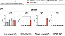 The supramaxilla and submaxilla of mice were surgically separated. The nasal cavity was washed with 0.5 mL PBS, and the 0.5-mL wash was then centrifuged at 360 × g for 5 min. The supernatant was collected and stored at −80 °C for use in ELISA-based antibody analysis.