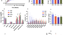 Gut microbiota has been associated with several host metabolic pathways such as the stimulation of the intestinal endocrine function, mainly via SCFAs52,53,54. In our study, the three discriminating genera, Flavonifractor, Lachnoclostridium and Hungatella, increased in DL + Lf compared to PL, were positively correlated to plasma GLP-1 secretory response to meal stimulation, suggesting that they indeed participated to enhanced intestinal endocrine function observed in DL + Lf animals (Fig. 5). Besides, Lachnospiraceae AC2044 genus (more abundant in DL + Lf than in PL and DL) was positively correlated to colonic GLP-1 density, fasting plasma GLP-1 and fasting insulinemia. Plasma GLP-1 secretory response to meal stimulation was, as expected, positively associated with all SCFA concentrations measured at PND133 (including acetate, propionate and butyrate). These results highlight potential mechanisms between bacteria composition and metabolism, and host metabolism. Among SCFAs, propionate, which was constantly increased in DL + Lf, would be the most potent agonist of FFAR2 and FFAR3 for GLP-1 secretion55. FFAR3 expression in both the caecum and the colon was positively correlated to the percentage of caecal GLP-1 secreting-cells amongst enteroendocrine cells suggesting mechanistic links between SCFAs, FFAR expression and intestinal endocrine function.